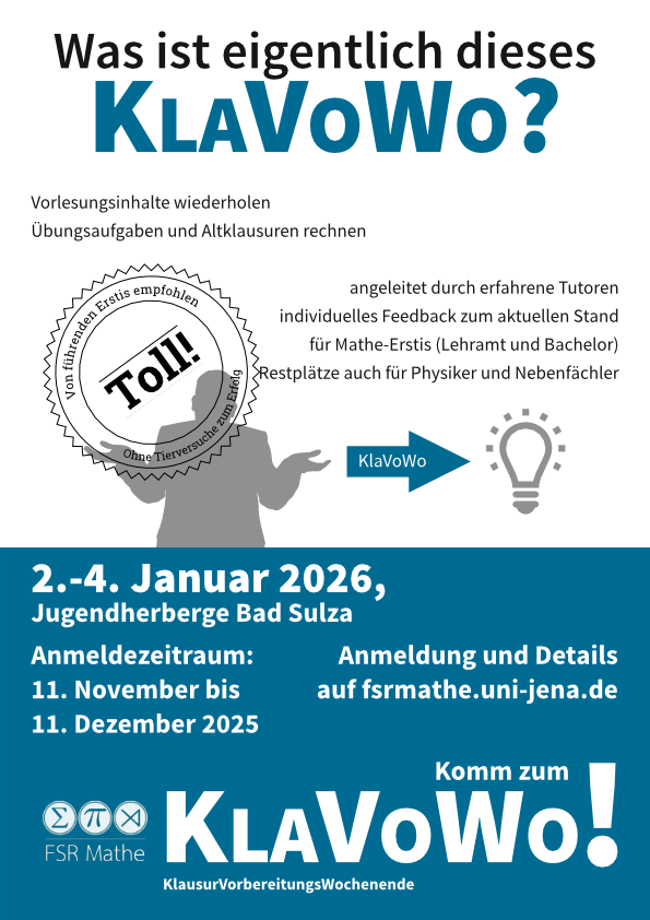 Kommt zum KlaVoWo! (Fancy Abkürzung für Klausur-Vorbereitungs-Wochenende)