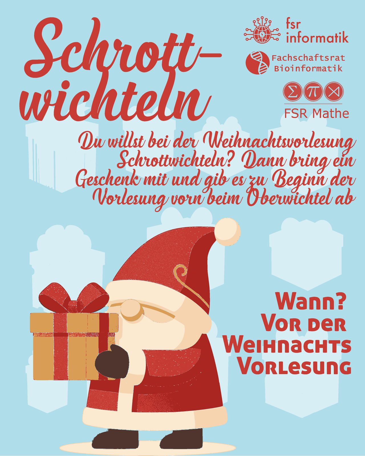 Wie es funktioniert: Bring dein verpacktes Wichtelgeschenk mit zur Weihnachtsvorlesung am 16. DEZEMBER und gib es beim Oberwichtel VOR BEGINN DES BüHNENPROGRAMMS (19 Uhr) ab. Lass dich anschließend überraschen, was du selber bekommst! ✨