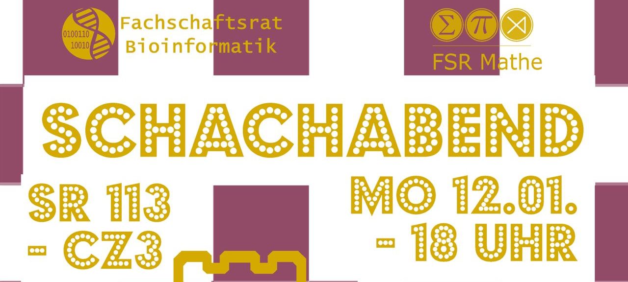Am Mittwoch den 03.12. laden wir euch herzlich zu einem gemütlichen Schachabend ein: 18:00 Uhr, CZS3, Seminarraum 114 Wir haben einige Bretter vor Ort, aber bringt gerne eigene mit, wenn ihr könnt. So können...